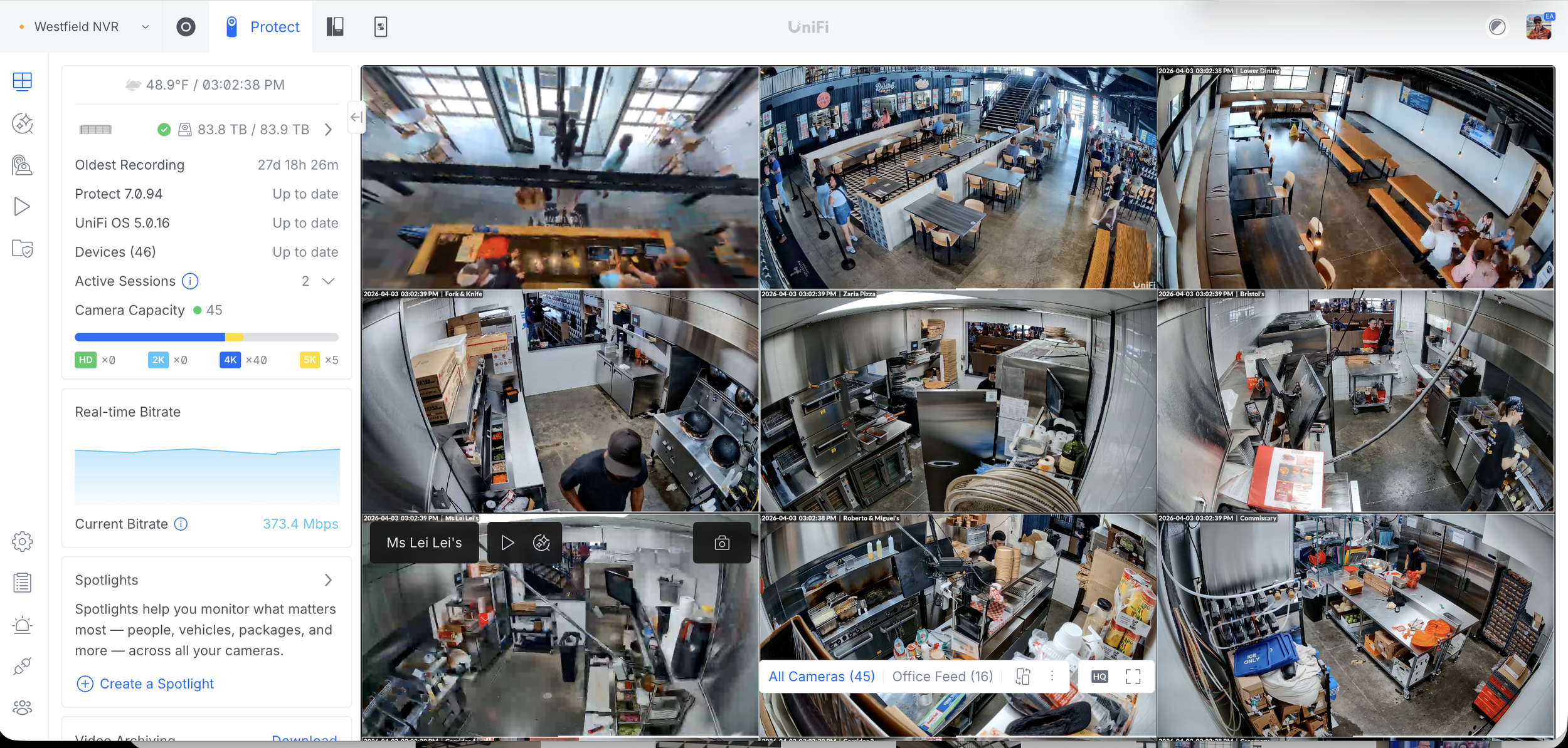Tri-State AV & Information Technologies designed and installed a commercial surveillance system at Westfield Collective, featuring 48 high-resolution IP security cameras to provide complete interior and exterior coverage. Cameras were strategically placed to eliminate blind spots across entrances, bar areas, dining spaces, and perimeter zones.